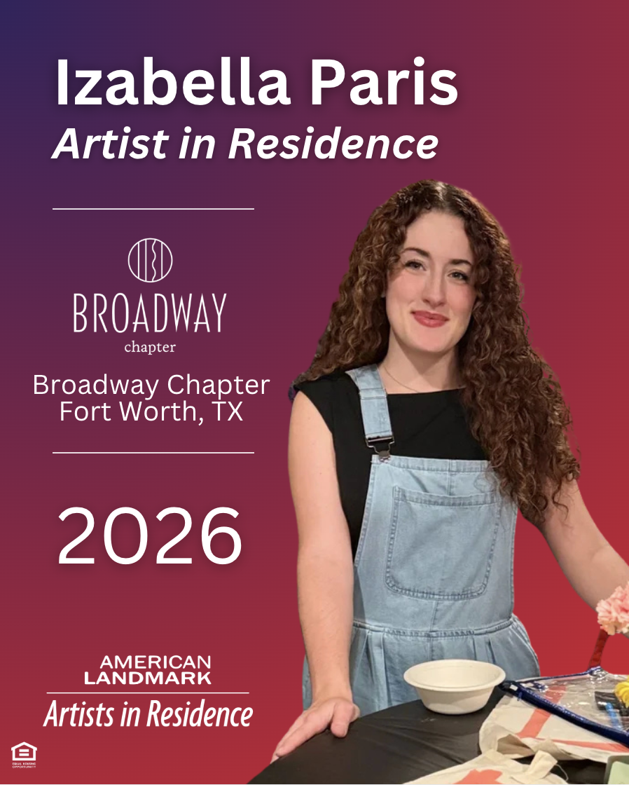 Since its inception in 2020, our Artist in Residence program has provided unique career opportunities for 10 emerging visual artists and 2 culinary artists across 4 states while developing new platforms for American Landmarkβs residents to gather, learn and interact with neighbors. Watch highlights of some of our artists below.